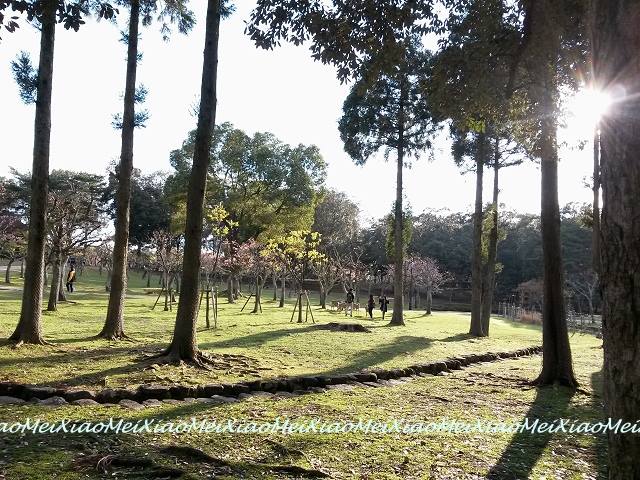 午後陽光,配合無邊的櫻花、及不怕人的鹿……