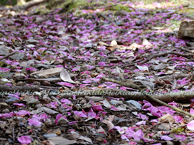 估計是當地居民為自己打造的一個賞櫻勝地,小小平地栽種了記名者捐獻的櫻花樹,可惜已見吹雪……但嫣紅花瓣遍地!