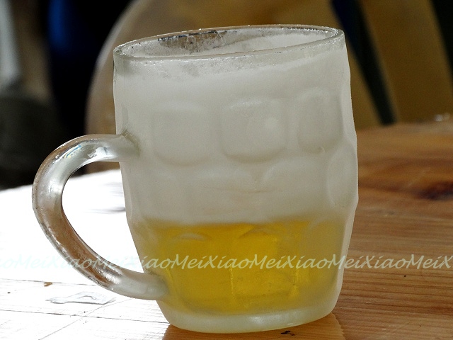 一傻在空檔期間,不時跟鄰桌說三道四,最後更賖了一杯冰凍啤酒來喝……